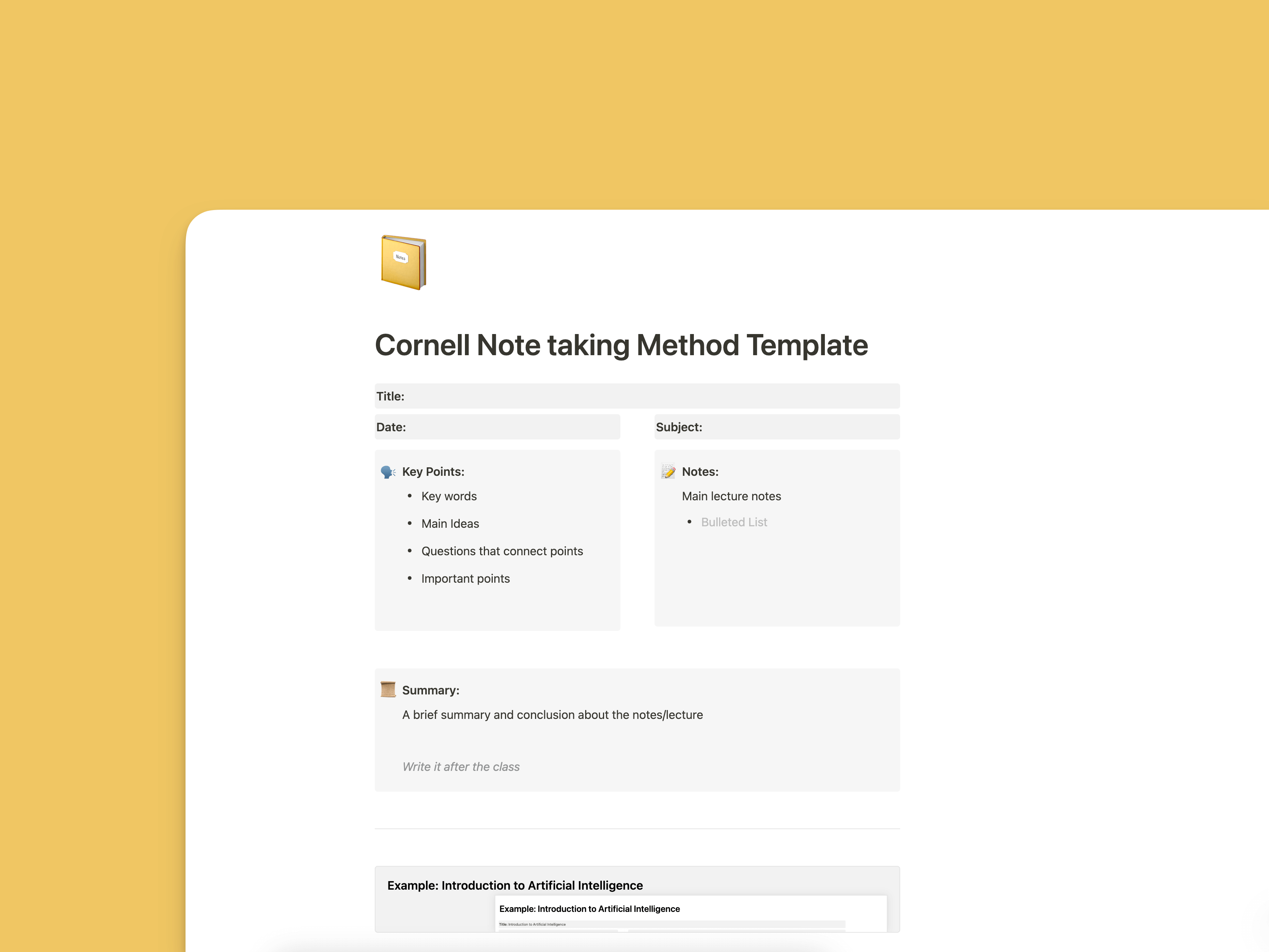 この構造化されたアプローチにより、ノートは簡潔でありながら包括的になり、重要な情報を復習し思い出すことが容易になります。