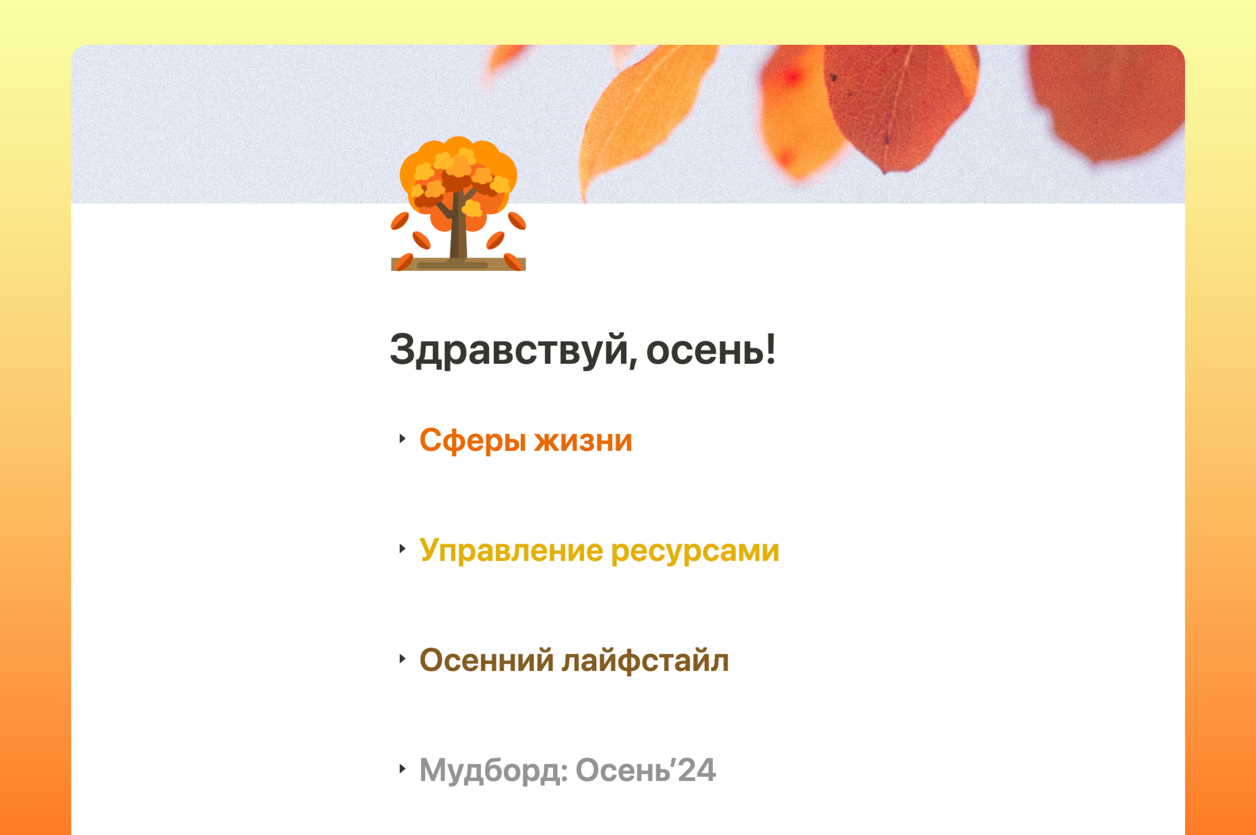 Efficiently manage your time, money, and energy this autumn. Build habits, track goals, and gather seasonal inspiration with this life template.